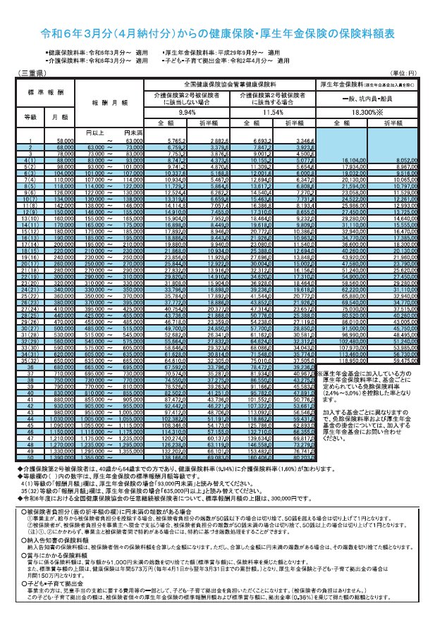 三重県の社会保険料率