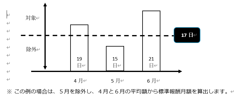 したがって、17日未満の月があれば、報酬の平均額を算定する基礎からは除外します。