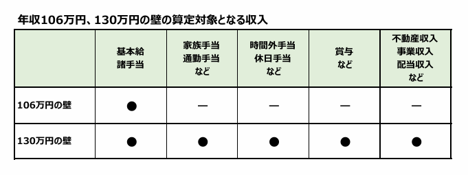 「年収の壁」には、下記2種類があります。