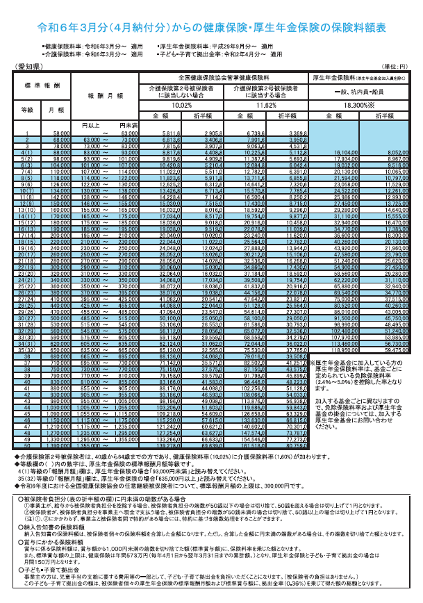 愛知県の社会保険料率