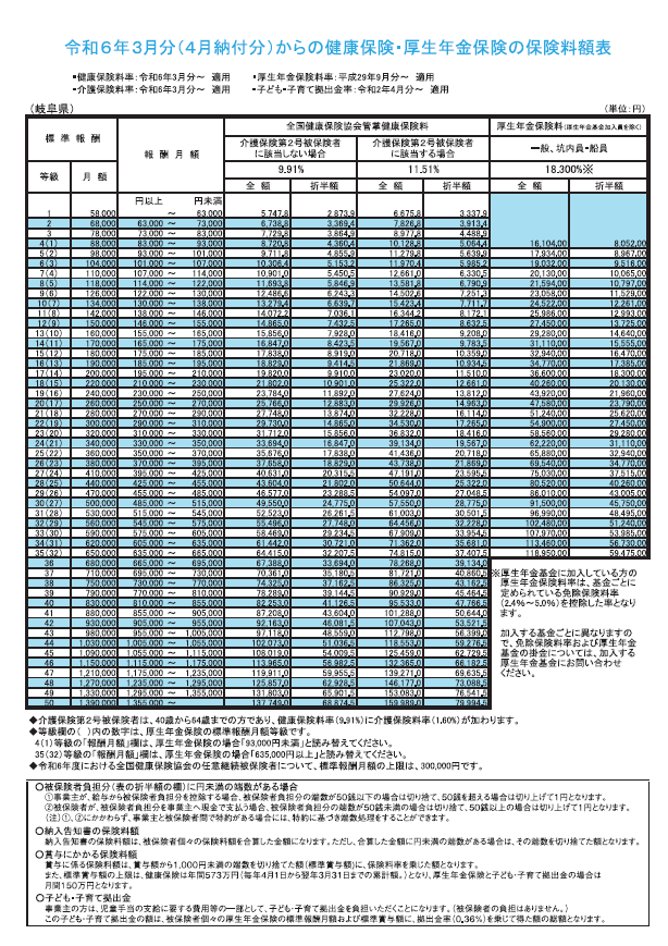岐阜県の社会保険料率