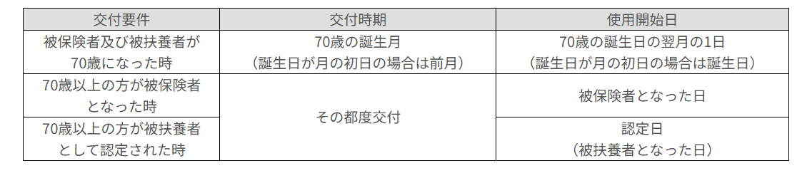 高齢受給者証の交付時期および使用開始日について