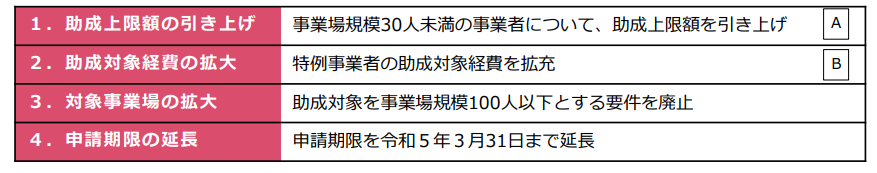 業務改善助成金(通常コース)の今回の改正のポイントを下記に一覧表にまとめました。
