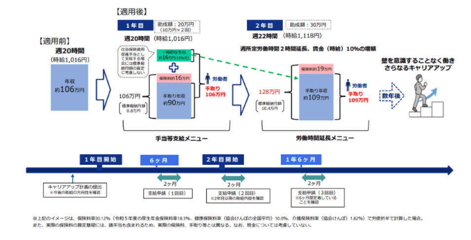 キャリアアップ助成金(社会保険適用時処遇改善コース)とは、パートタイマー等の短時間労働者が新たに社会保険の適用となる際に、労働者の収入を増加させる取組を行った事業主に支給される助成金です。