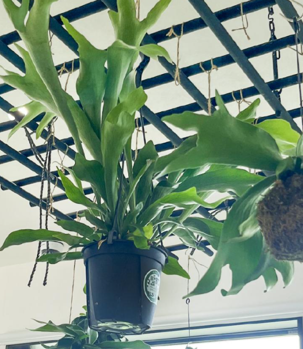 ビカクシダは鹿の角に似た個性的な観葉植物で、板に張り付けてあるものや苔玉になっているもの、鉢植えのものがありインテリアに人気がある植物との事でした。