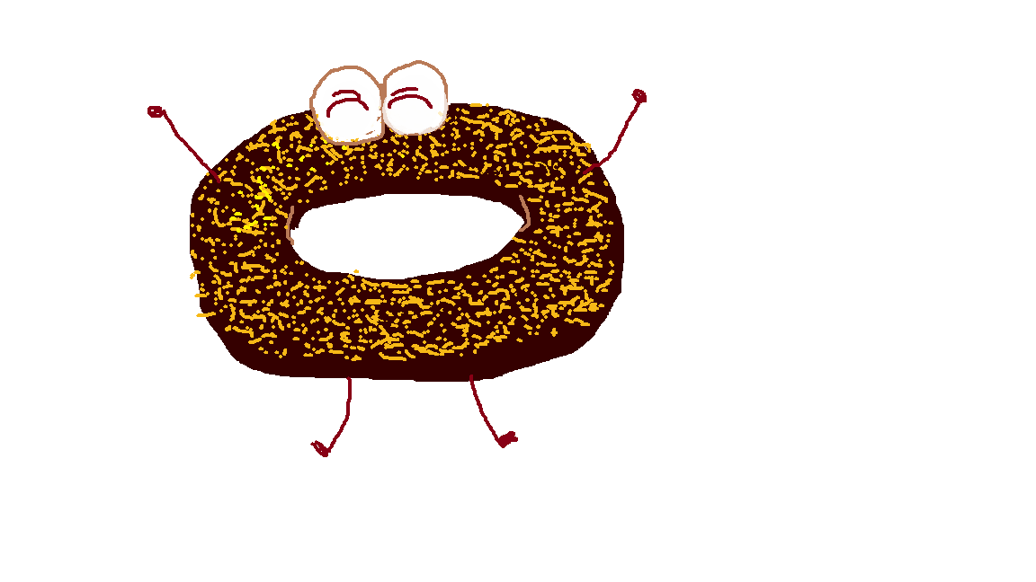 チョコレート生地のドーナツに黄色のカリカリした粒がまぶされている商品のことのようです。