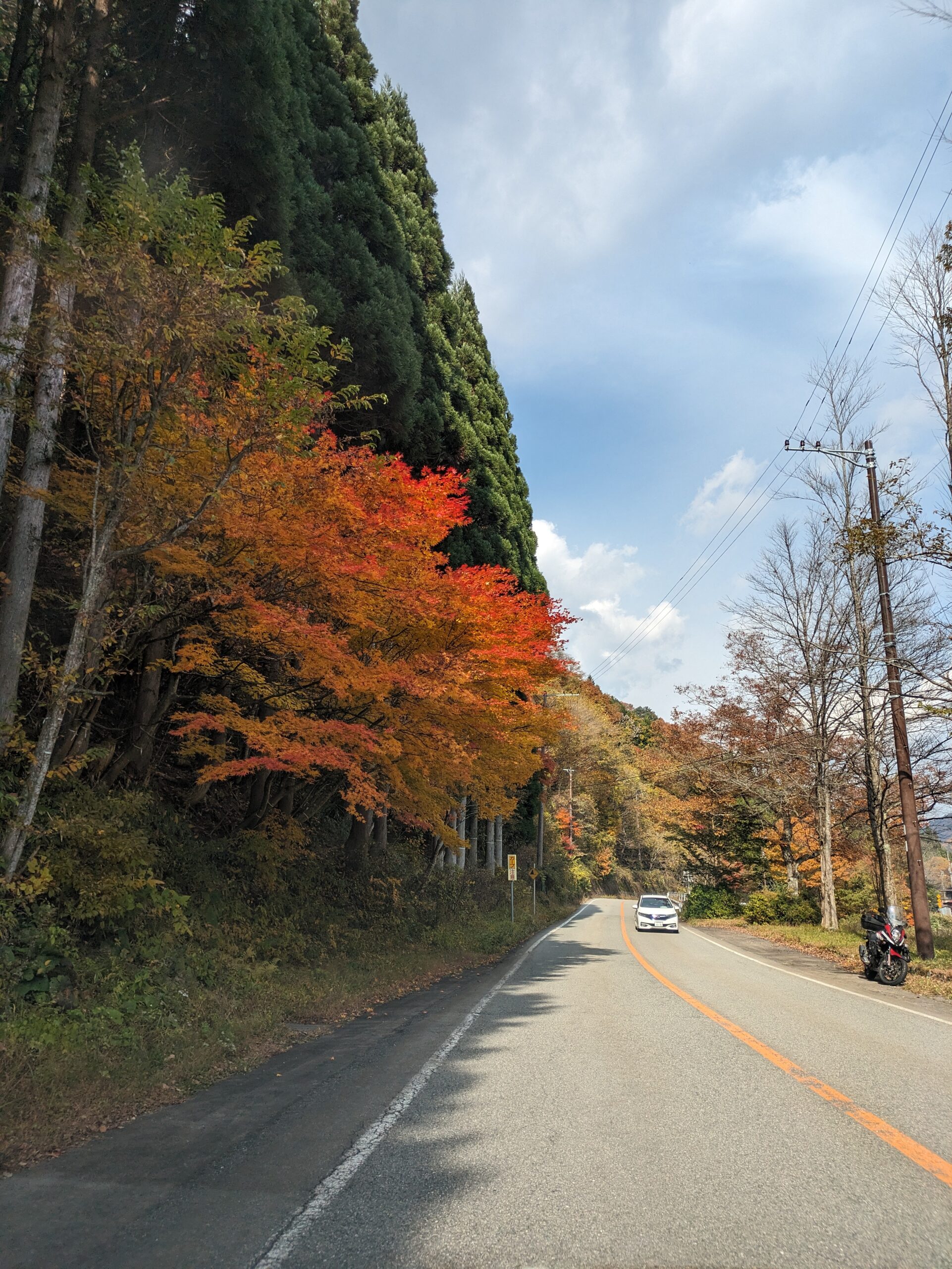今年は猛暑の影響で、紅葉があまりきれいに色図いていないと言われていましたが、それでも紅葉狩りを楽しみたいと、飛騨のせせらぎ街道に車で行ってみました。