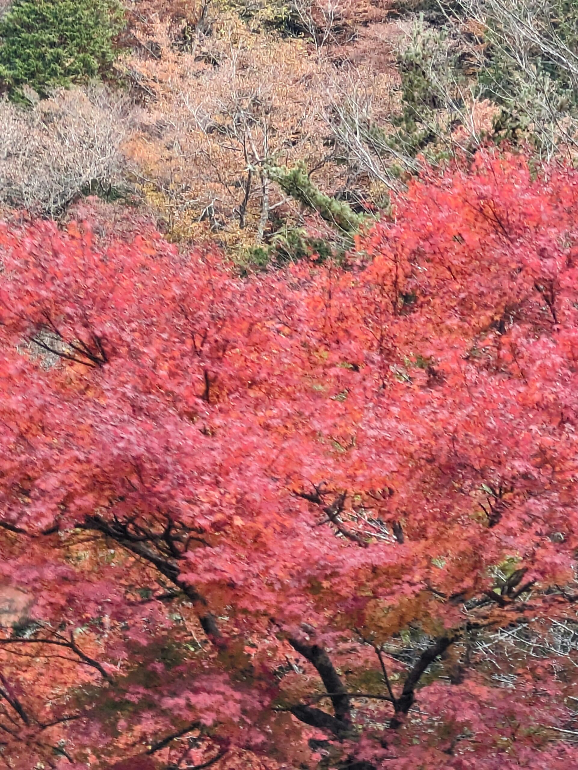 毎年、紅葉のベストシーズンを逃しているので、スマホやインターネットを駆使し、「まさに今です」の情報を参考にして、せせらぎ街道にしてみたのですが、やはり、心なしかくすんだ色合いが最初は続きました。